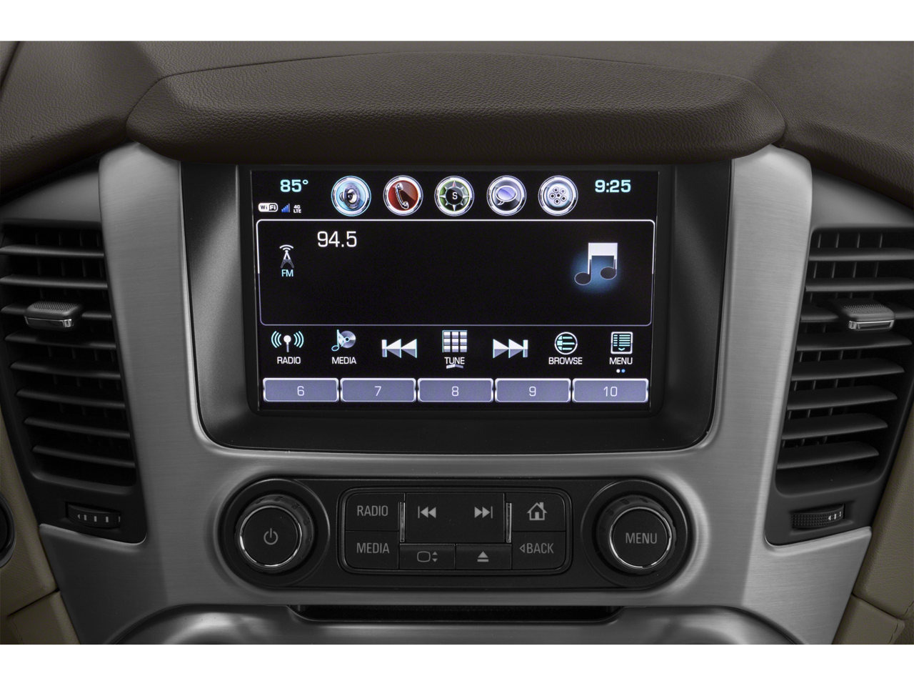 - Audio system, 8" diagonal Color Touch Screen Navigation with GMC Infotainment System AM/FM/SiriusXM stereo with seek-and-scan and digital clock, includes Bluetooth streaming audio for music and select phones; voice-activated technology for radio and phone; and Shop. Featuring Apple CarPlay and Android Auto capability for compatible phone; 5 USB ports and 1 auxiliary jack